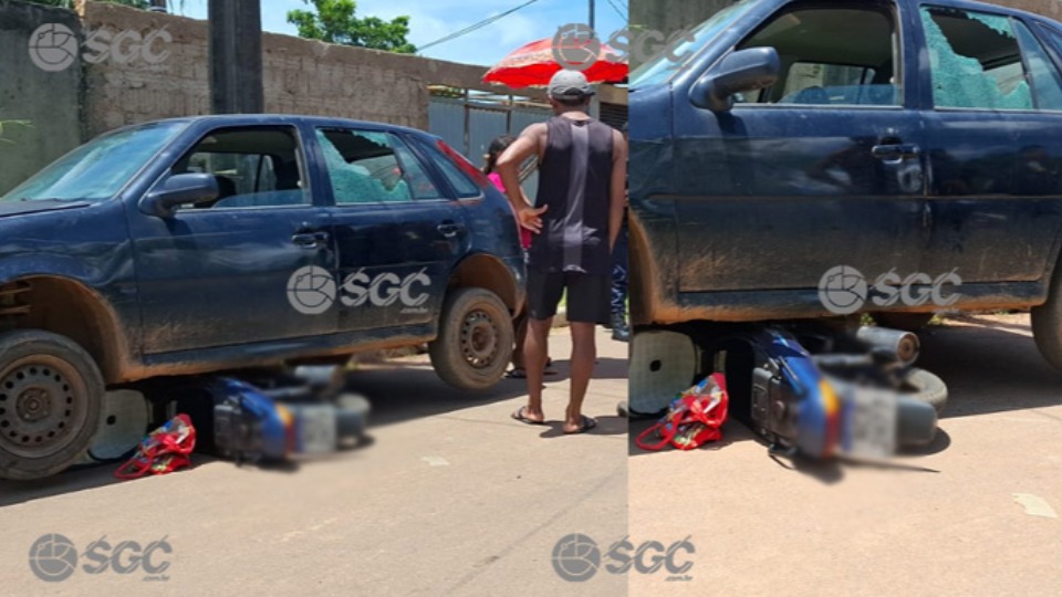 Ao perceber a ação, o marido, que saía da residência dirigindo um veículo modelo Gol, iniciou uma perseguição ao suspeito. A tentativa de impedir a fuga seguiu até a Rua Canaã, onde o motorista acabou atropelando o assaltante.