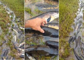Cena impressionante: milhares de traíras são flagradas em valeta em Seringueiras; veja vídeo
