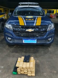 Ainda durante as buscas no veículo, os policiais encontraram, dentro de duas caixas, 36 (quatro) tabletes de maconha contendo mais de 31 quilos da substância ilícita.