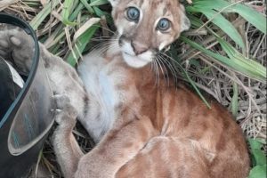 Na ultima sexta-feira um animal, filhote de onça (puma), foi encontrado por um pescador às margens do Rio Guaporé, próximo da cidade de São Miguel do Guaporé (RO).