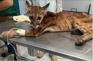 De acordo com a equipe médica, a oncinha deve ter entre seis a oito meses de idade, pesa 5/kg e chegou ao hospital desidratada, com muitas pulgas e carrapatos, além disso estava muito estressada com dificuldades em aceitar alimentos.