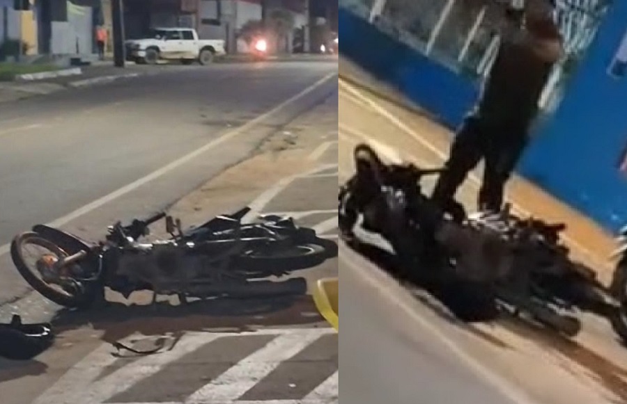 Motociclista sofre fratura exposta em grave acidente no centro de São Miguel do Guaporé