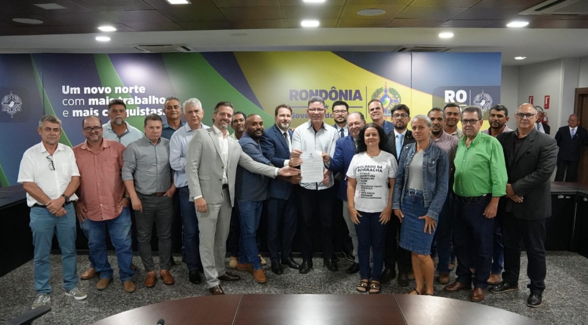 O governador de Rondônia, Marcos Rocha, sancionou nesta segunda-feira (9), no Palácio Rio Madeira, em Porto Velho, a Lei Complementar nº 172/2026, que cria o regime de transição na área da Estação Ecológica Soldado da Borracha e permite que famílias e produtores rurais voltem a trabalhar com segurança jurídica enquanto avançam os processos de indenização e desapropriação.