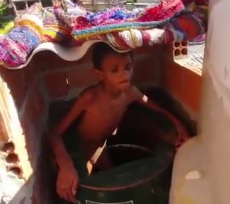 O menino estava nu, com mãos, cintura e pernas acorrentadas, sendo obrigado a ficar em pé dentro do tambor que era fechado com uma pia de mármore pesado, mal conseguindo se mexer dentro do tambor. A cenas tristes foram compartilhadas nas redes sociais.