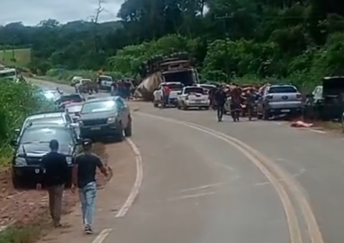 Após caminhão com carne tombar na MT-235, na manhã desta terça-feira, 24, um grande número de pessoas lotou as margens da rodovia para levar carga embora.