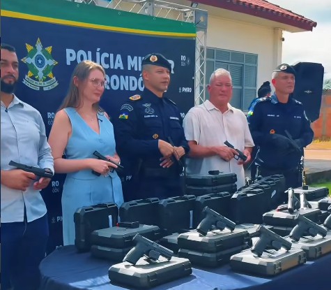 Durante o evento, foram entregues 40 pistolas da marca CZ, que irão reforçar o trabalho diário dos policiais no município, contribuindo para o fortalecimento da segurança pública local.