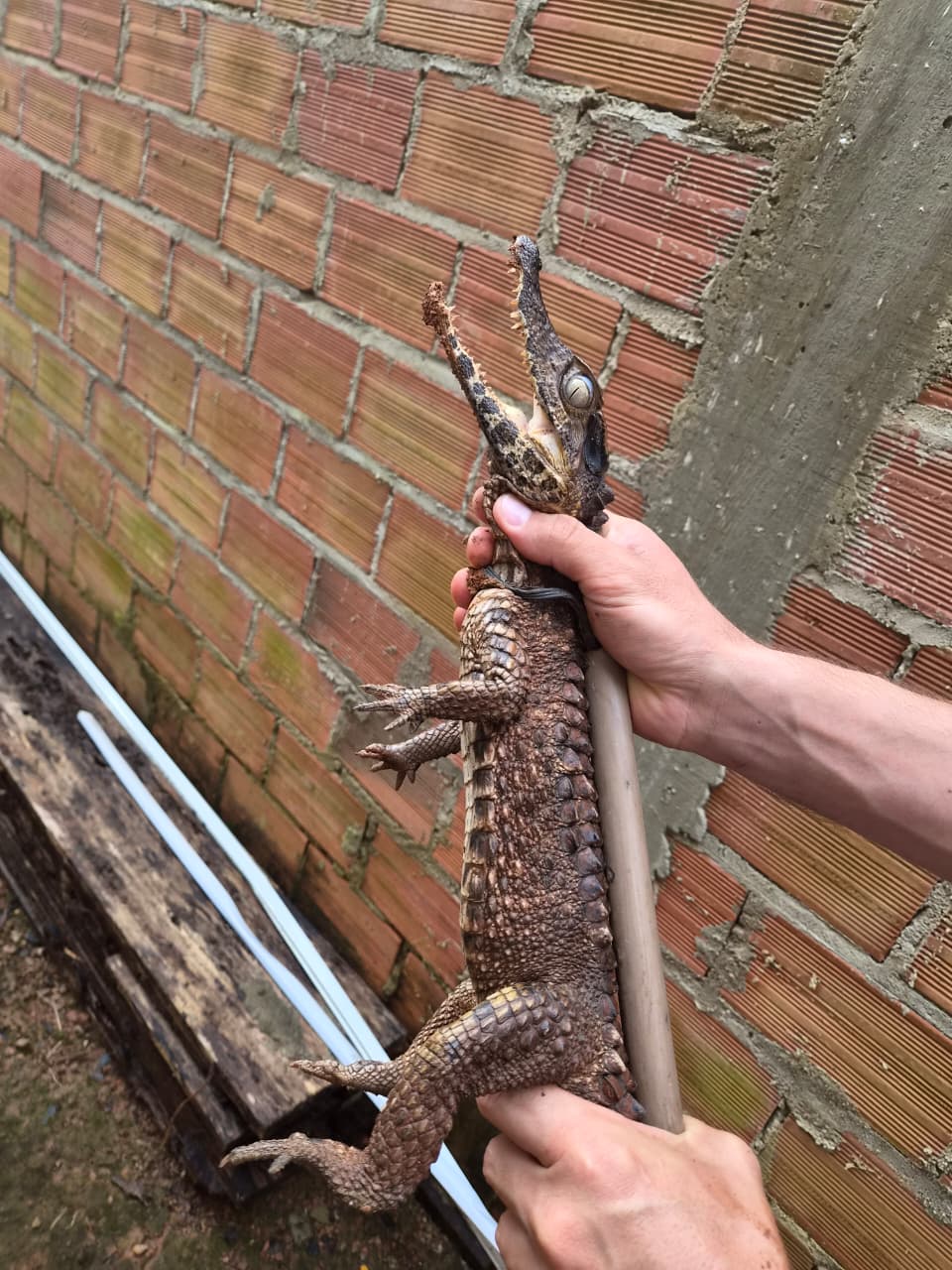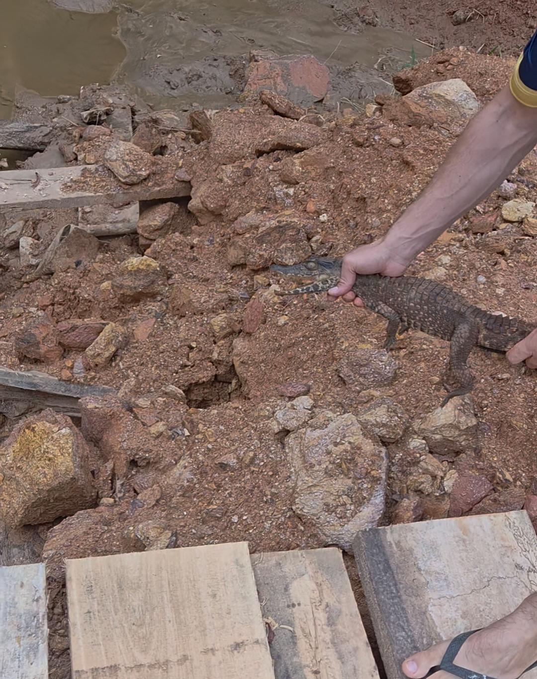 Na tarde desta sexta-feira (10), uma situação inusitada chamou a atenção de moradores em Nova Brasilândia do Oeste (RO). Uma família encontrou um filhote de jacaré no pátio de uma residência localizada na área urbana do município.