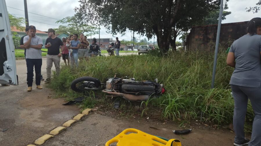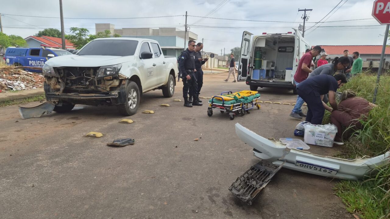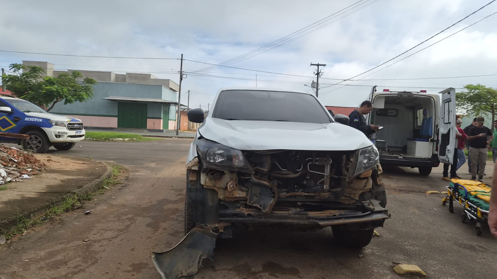 De acordo com informações preliminares, a colisão aconteceu no cruzamento das ruas Fortaleza e Tancredo Neves, envolvendo uma motocicleta e uma caminhonete pertencente à prefeitura do município.