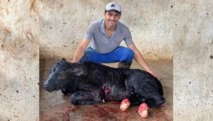 Fato raríssimo que resultou em um bezerro de 98 quilos, que surgiu de um cruzamento de vaca Holandesa com touro Aberdeen Angus; Veja o vídeo!O Lucimar Buffon, que trabalha com vacas leiteiras há mais de 20 anos, nunca tinha visto isso. Ele conta que percebeu que a vaca entrou em trabalho e parto e não conseguia parir o filho, foi então que um veterinário foi chamado para fazer uma cesariana.