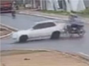 As imagens de câmeras de segurança flagra o momento em que o motociclista que seguia pela T-20, sentido Av. Brasil avança preferencial e colide na traseira de um veículo classic de cor branca que seguia em sua mão pela rua Teresina.